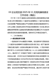 XX企业党支部2025年11月党风廉政建设工作总结(精品).docx