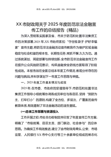 XX市财政局关于2025年度防范非法金融宣传工作的总结报告(精品).docx