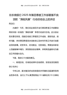 在农商银行2025年第四季度工作部署暨不良贷款清收风暴行动总结会上的讲话.docx