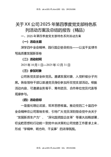 关于XX公司2025年第四季度党支部特色系列活动方案及总结的报告(精品).docx