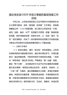 国企党支部2025年前三季度抓基层党建工作总结.docx