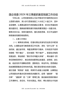 国企党委202X年三季度抓基层党建工作总结.docx
