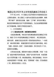 集团公司202X年上半年党风廉政工作总结1.docx