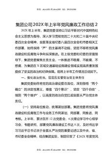 集团公司202X年上半年党风廉政工作总结2.docx