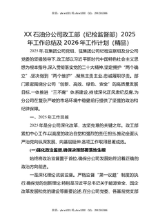 XX石油分公司政工部(纪检监督部)2025年工作总结及2026年工作计划(精品).docx