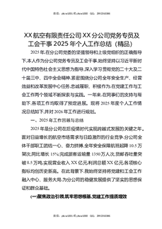 XX航空有限责任公司XX分公司党务专员及工会干事2025年个人工作总结(精品).docx
