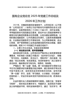 国有企业党总支2025年党建工作总结及2026年工作计划.docx