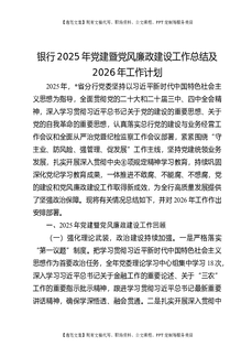 银行2025年党建暨党风廉政建设工作总结及2026年工作计划.docx