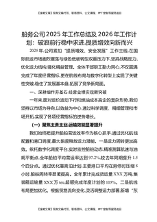 船务公司2025年工作总结及2026年工作计划:破浪前行稳中求进,提质增效向新而兴.docx