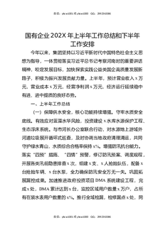 国有企业202X年上半年工作总结和下半年工作安排.docx