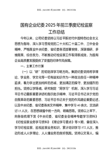 国有企业纪委2025年前三季度纪检监察工作总结.docx