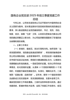国有企业党支部2025年前三季度党建工作总结.docx