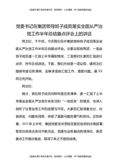 党委书记在集团领导班子成员落实全面从严治党工作半年总结暨点评会上的讲话.docx
