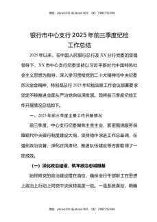 银行市中心支行2025年前三季度纪检工作总结.docx