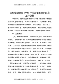 国有企业党委2025年前三季度意识形态工作总结.docx