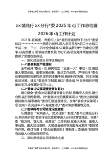 XX城商行XX分行党委2025年党建工作总结暨2026年党建工作计划.docx