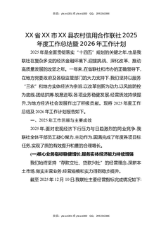 XX省XX市XX县农村信用合作联社2025年度工作总结暨2026年工作计划.docx
