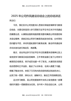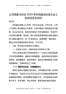 公司党委书记在2025年作风建设总结大会上的讲话及主持词.docx