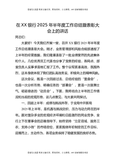 在XX银行2025年半年度工作总结暨表彰大会上的讲话.docx