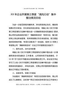 XX年企业开展第三季度“清风行动”集中整治情况总结.docx