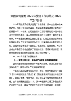 集团公司党委2025年党建工作总结及2026年工作计划.docx