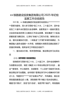 XX铁路建设投资集团有限公司2025年纪检监察工作总结报告.docx