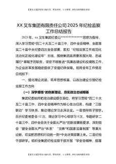 XX叉车集团有限责任公司2025年纪检监察工作总结报告.docx