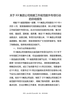 关于XX集团公司党建工作规范提升专项行动的总结报告.docx