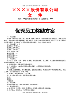 XX股份有限公司优秀员工奖励方案.doc