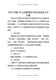 202X年度XX公司领导班子民主生活会工作方案.docx