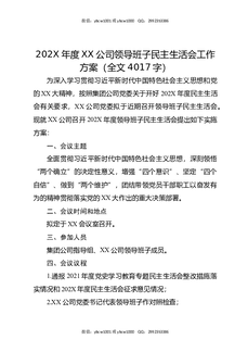 202X年度XX公司领导班子民主生活会工作方案(全文4017字).docx