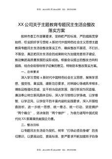 XX公司关于主题教育专题民主生活会整改落实方案.docx