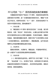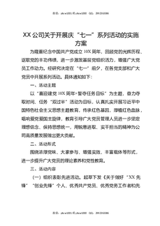 XX公司庆“七一”系列活动的实施方案模板.docx