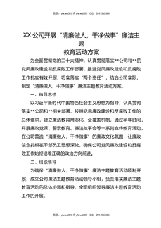 XX公司开展“清廉做人,干净做事”廉洁主题教育活动方案.docx