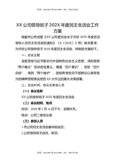 XX公司202X年度领导班子民主生活会工作方案.docx