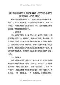 XX公司领导班子202X年度民主生活会整改落实方案(四个带头).docx