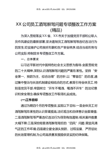 XX公司员工酒驾醉驾问题专项整改工作方案(精品).docx