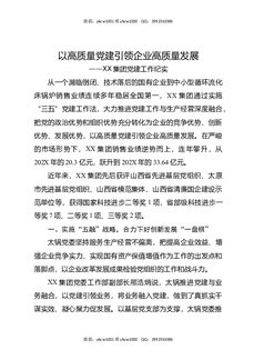 以高质量党建引领企业高质量发展——XX集团党建工作纪实.docx