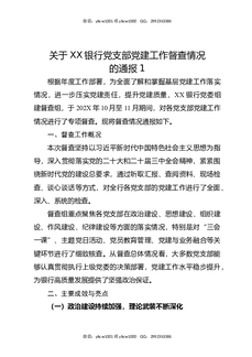 关于XX银行党支部党建工作督查情况的通报1.docx