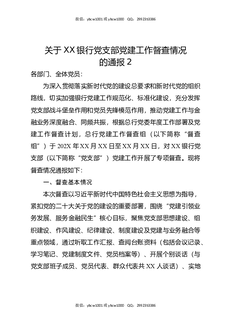 关于XX银行党支部党建工作督查情况的通报2.docx