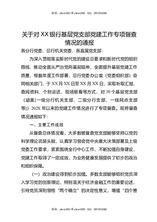 关于对XX银行基层党支部党建工作专项督查情况的通报.docx
