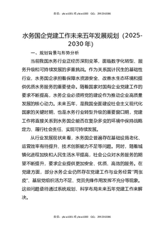 水务国企党建工作未来五年发展规划(2025至2030年).docx