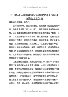 在202X年国有建筑企业项目党建工作座谈交流会上的发言.docx