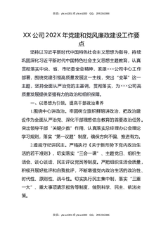 XX公司202X年党建和党风廉政建设工作要点.docx