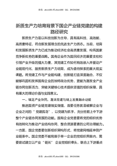 新质生产力培育背景下国企产业链党建的构建路径研究.docx