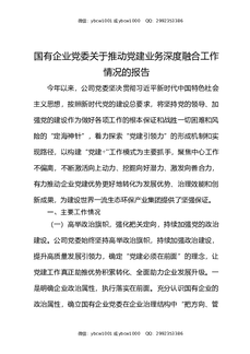 国有企业党委关于推动党建业务深度融合工作情况的报告.docx