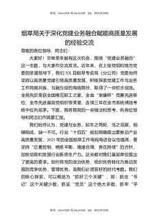 烟草局关于深化党建业务融合赋能高质量发展的经验交流.docx