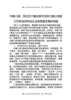 中建八局:深化五个融合提升五种力量以党建工作新成效开创企业高质量发展新局面.docx