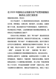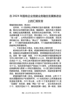 在202X年国有企业党建业务融合发展推进会上的汇报发言.docx