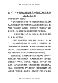 在202X年国有企业党建品牌创建工作推进会上的汇报发言.doc